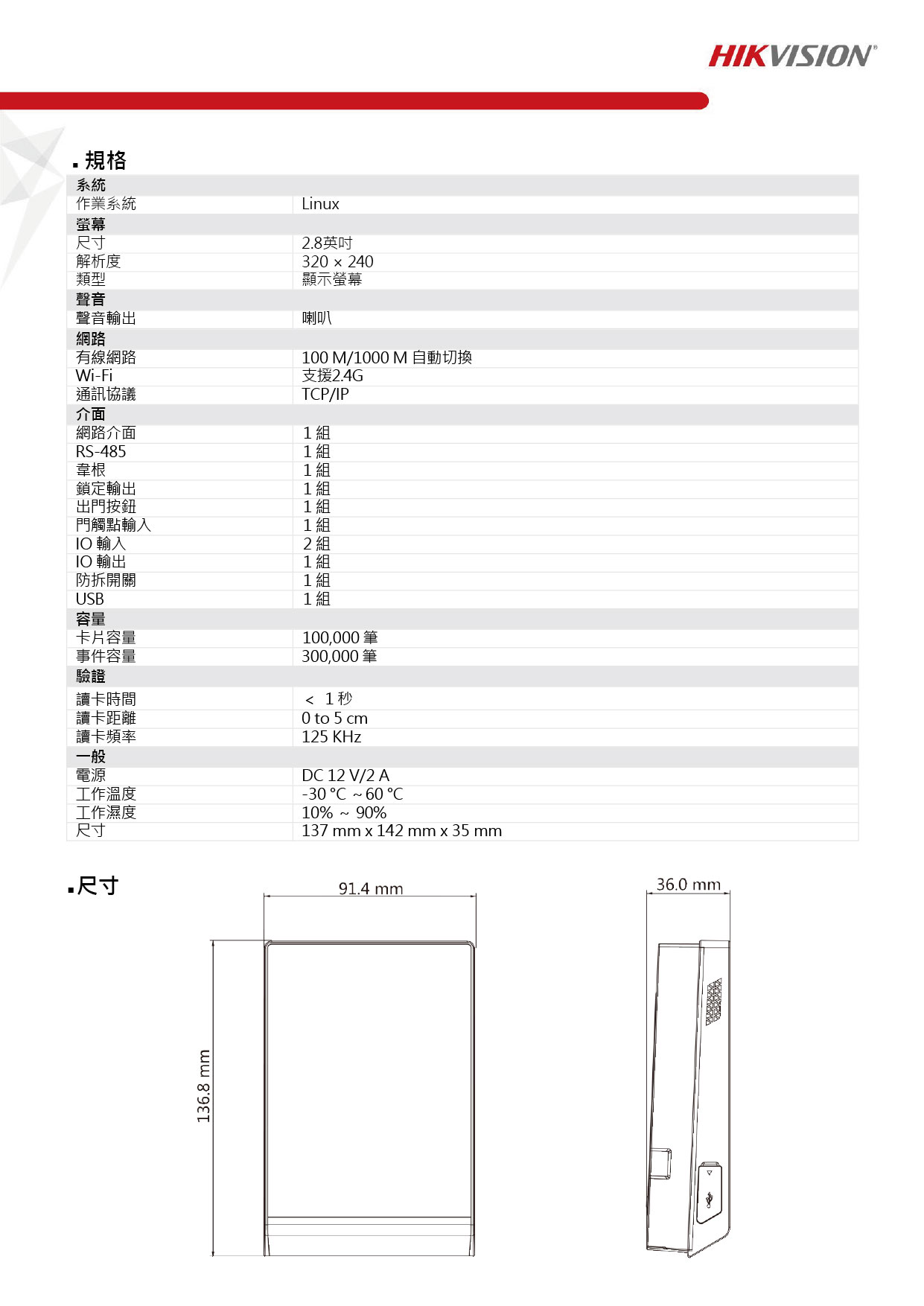 | 讀卡頻率 | 125 KHz | |||
