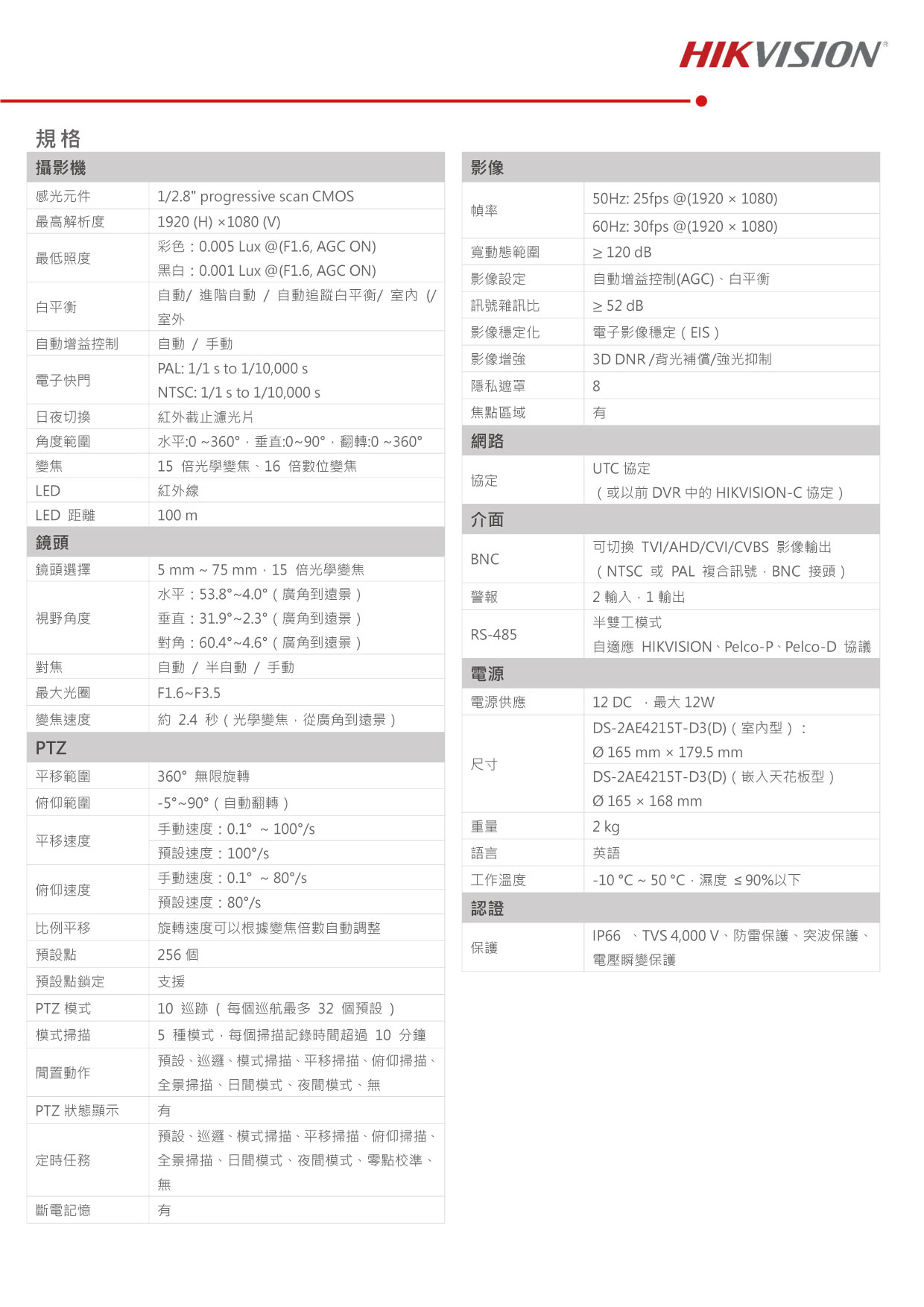 角度範圍 | 水平 :0 ~360 °,垂直 :0~90 °,翻轉 :0 ~360 ° | |||