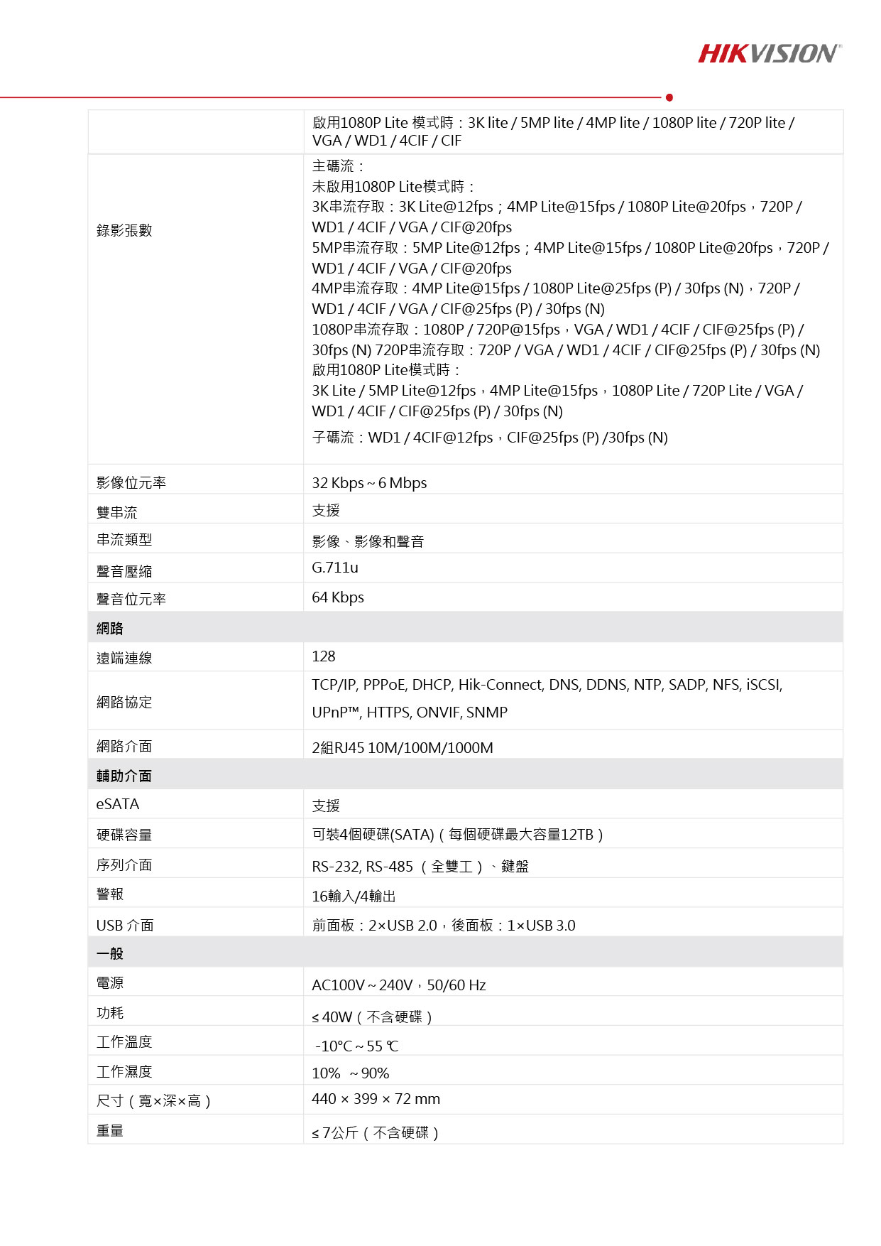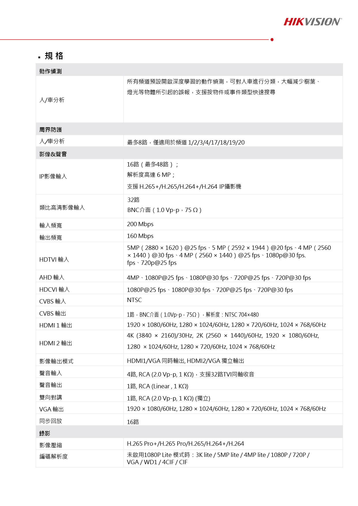 16路(最多48路)解析度高達6MP,支援 H.265+/H.265/H.264+/H.264 IP攝影機 |